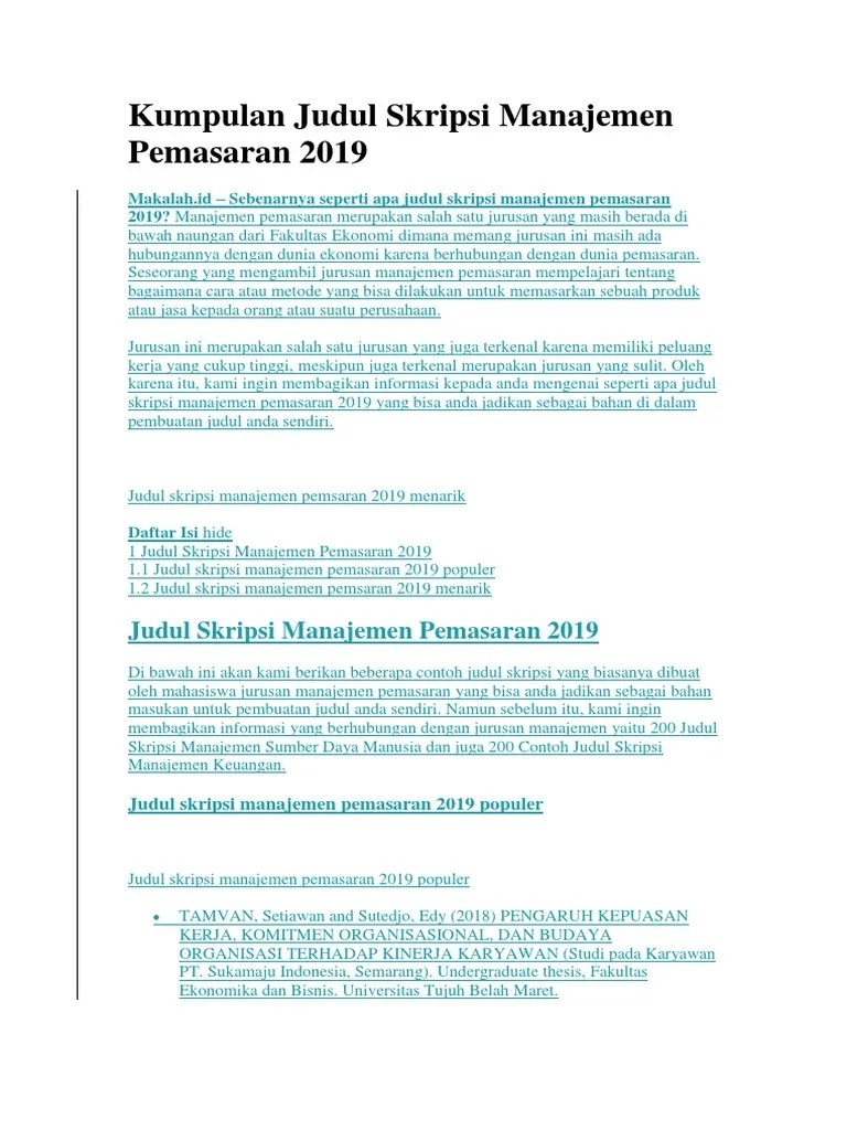 Contoh tersebut bukan untuk diduplikasi, melainkan sebagai referensi dalam menemukan judul jurnal skripsi terbaik. Nama orang, judul buku, nama lembaga dan lain sebagainya yang aslinya ditulis dengan huruf. Latar belakang pada era globalisasi sekarang ini dimana persaingan bisnis yang semakin tinggi antar perusahaan, menyebabkan setiap perusahaan saling berpacu untuk menjadi yang terbaik, dengan harapan meningkatnya penjualan yang berarti perusahaan. Kumpulan 50 judul skripsi manajemen pemasaran pariwisata. Sekianlah artikel kumpulan judul skripsi manajemen tentang perbankan doc kali ini, semoga dapat membantu dan bermanfaat untuk anda. 55 rekomendasi judul skripsi manajemen. Jadwal ujian skripsi program studi manajemen bisnis. Anda harus memastikan judul tersebut mampu untuk anda lakukan dan dapat diterima oleh dosen. Video judul skripsi manajemen pemasaran. Oh iya saya remix ya dibawah ini judul skripsi dan thesis untuk fakultas ekonomi. Next pengajuan judul yang sudah diterima. Mayora indah tbk) telah layak untuk mengikuti sidang skripsi. 15 contoh skripsi manajemen bisnis perjalanan.